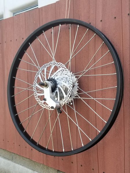 Double wall alloy 26 x 2 125 black wheels 12 gauge spokes.