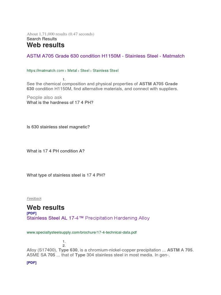 General properties allegheny ludlum s al 17 4 precipitation hardening alloy s17400 type 630 is a chromium nickel copper precipitation hardening stainless steel used for applica tions requiring high strength and a moderate level of corrosion resistance.